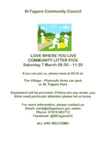 Litter picks have been arranged for Saturday 7 March – please click the image below for details.